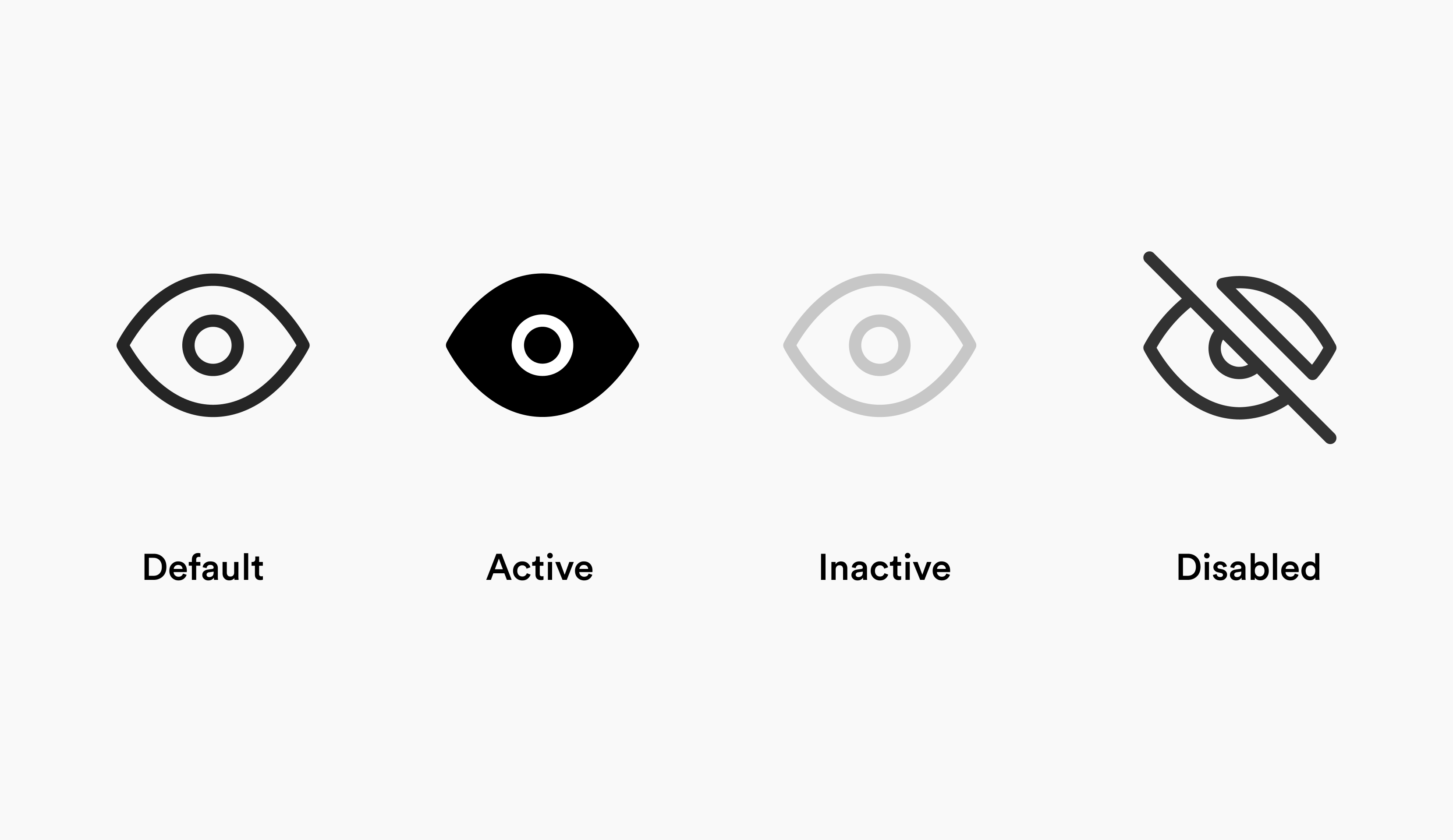 Additionally, I extended the traditional pictograms with characteristics needed for digital environments. As pictograms by nature are not interactive, the opposite can be true for digital icons. Therefore, I defined different states that an icon could have, including Default, Hover, Active, and Inactive State. Since the icons in digital environments are typically displayed smaller, I also had to redefine the line thickness slightly.